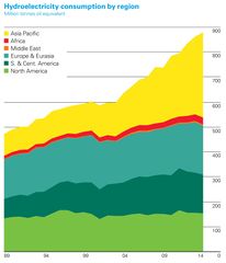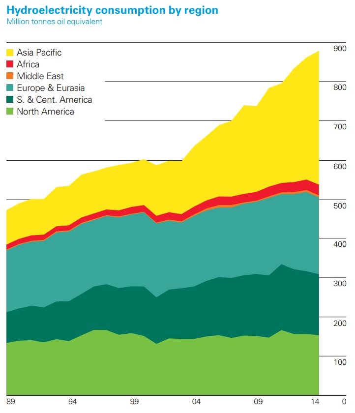 Svjetska potrošnja električne hidroenergije u tonama ekvivalentne nafte.