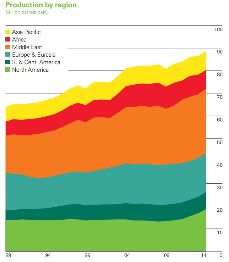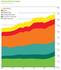 Proizvodnja nafte po regijama u milijunima barela dnevno