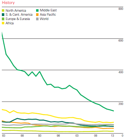 Podaci uzeti iz BP Statistical Review of World Energy 2014