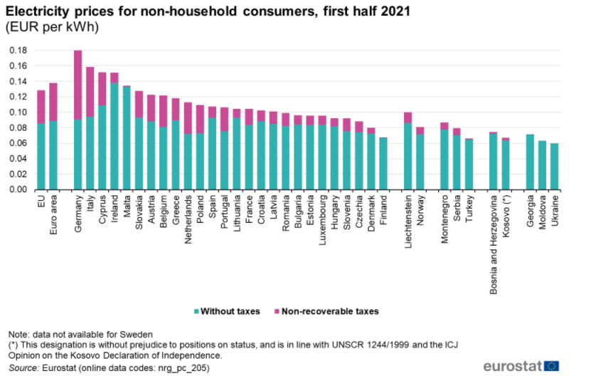 (Cijene električne energije u Europi za industriju) |